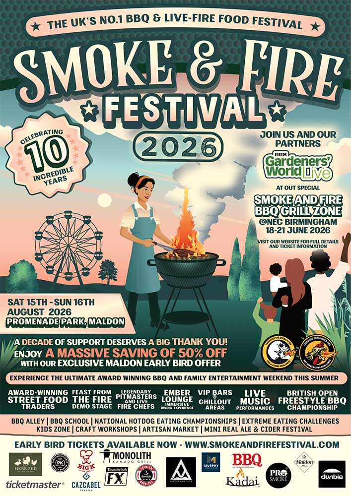 Award-winning Smoke & Fire Festival — the UK’s largest BBQ and outdoor cooking festival — celebrates its 10th anniversary in 2026, marking a decade of showcasing the art of cooking with fire.