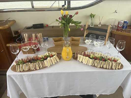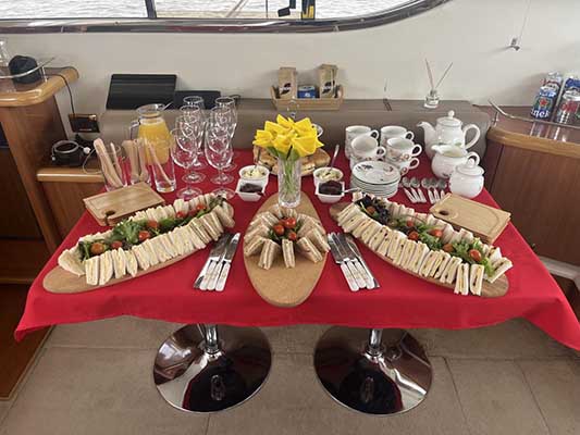 Why not do something different this Christmas and hire our high end Sealine F43 cruiser and take a trip down the river Crouch while taking a drink from the onboard bar, sampling our cheesecake & wine or afternoon tea or combination of both.